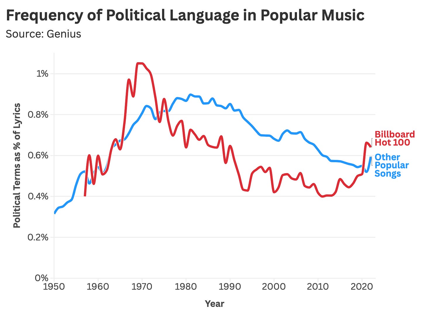 I think the very idea of "too political" is explicitly promulgated by the oligarchs to suppress dissent, and the same oligarchs happen to own all the means of music distribution.