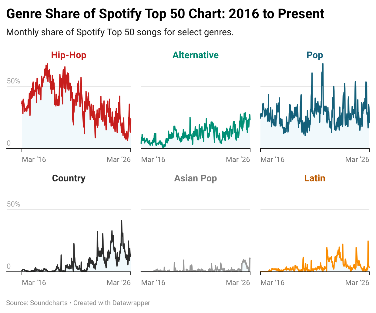 So today, we’ll explore hip-hop’s meteoric rise and supposed fall, the genres gaining traction in recent years, and the forces that shape music popularity.