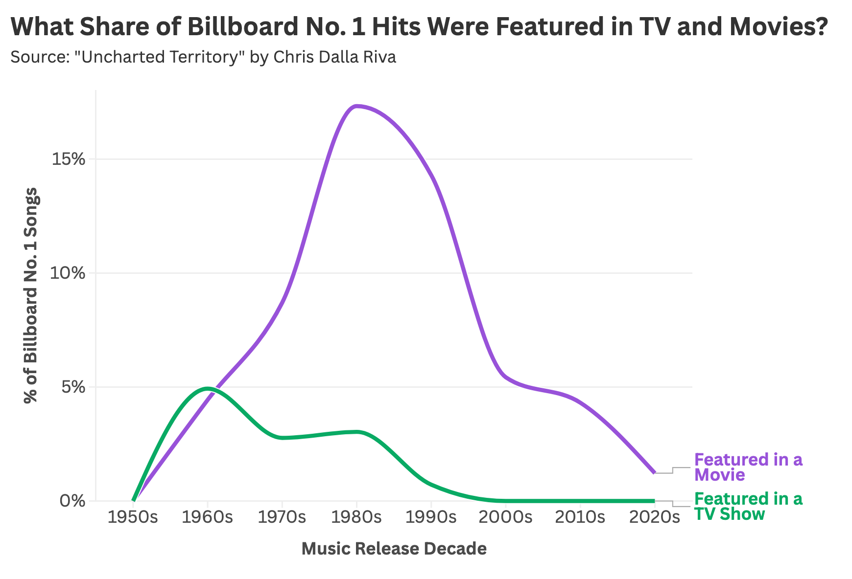 At the peak of the movie soundtrack craze, nearly 20 percent of chart-topping songs were tied to a film release. By contrast, television has rarely functioned as a hit-making machine for pop music (especially when you omit The Monkees).