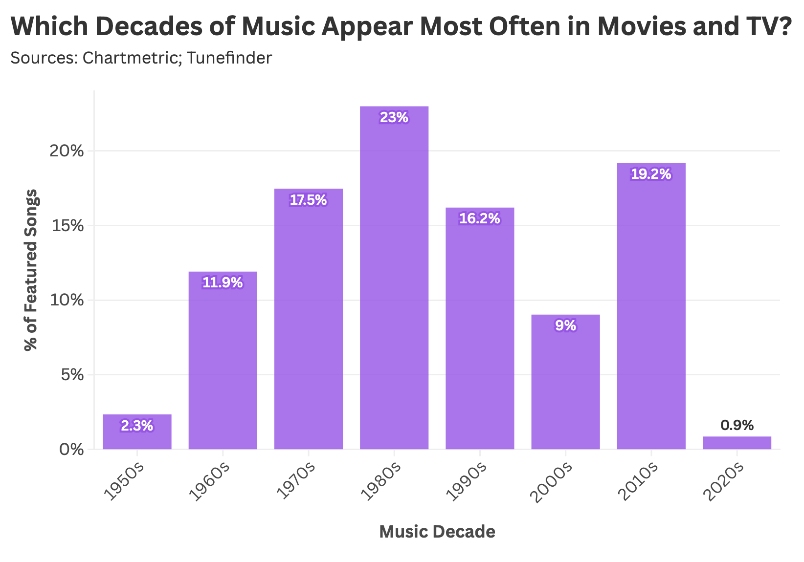 The industry’s turn toward thematically relevant classics is readily apparent in the data. According to our Tunefinder dataset, contemporary film and television disproportionately rely on tracks released before the 21st century, with a surprising concentration in the 1970s and 1980s.