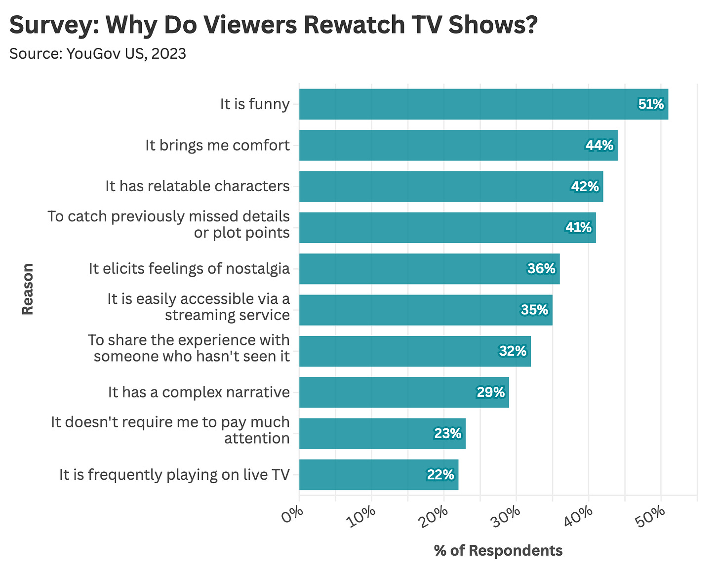 As is the case with all things, I am not unique. People love rewatching their favorite shows.