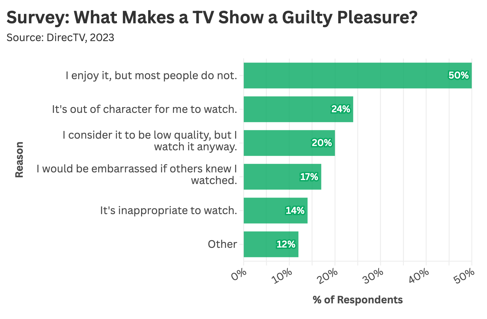 The survey went a step further and asked these same respondents why these shows were guilty pleasures. Their reasoning largely revolved around the belief that the content they enjoy was not the “right type” of show.