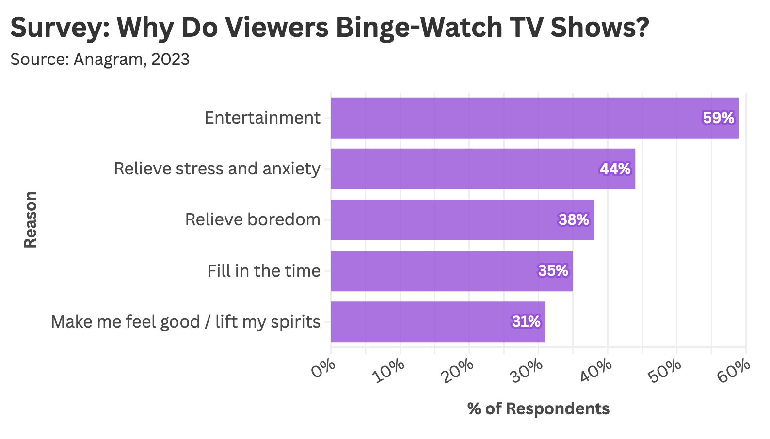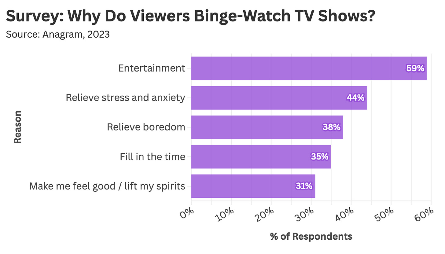 When those who favor binge-watching were pressed on their motivations, most cited entertainment, stress relief, and the cessation of boredom.
