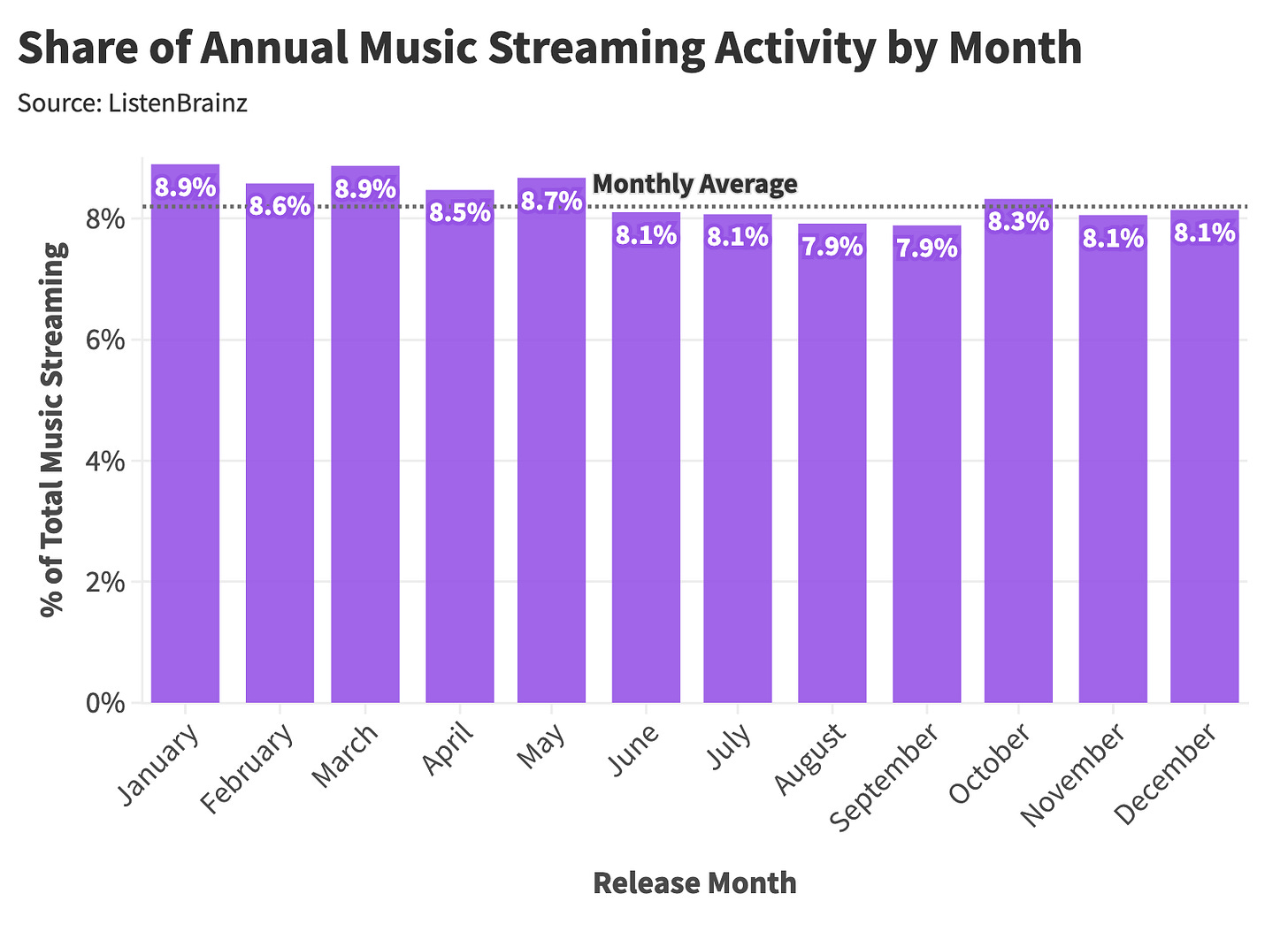 So today, we’ll explore the best months to release new movies and music, the strange seasonal rhythms of how music is consumed throughout the year, and how streaming has reshaped music’s role in our daily lives.