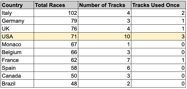 Really interesting analysis. I had no idea the US had been involved so much in F1 at all — and in such disastrous ways. Great read.